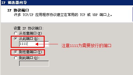 协议端口选择从此端口到任意端口