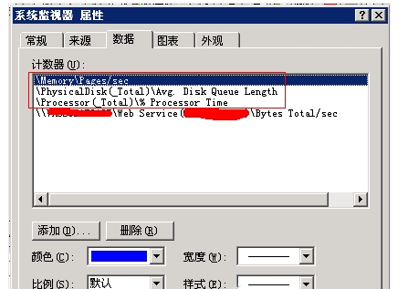 如果看得不明显的,可以将其他的计数器删除,在图表区里面右击,选择“属性”